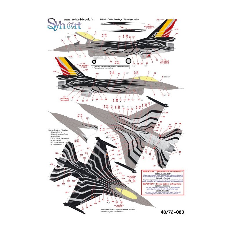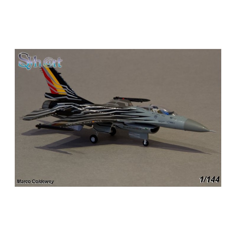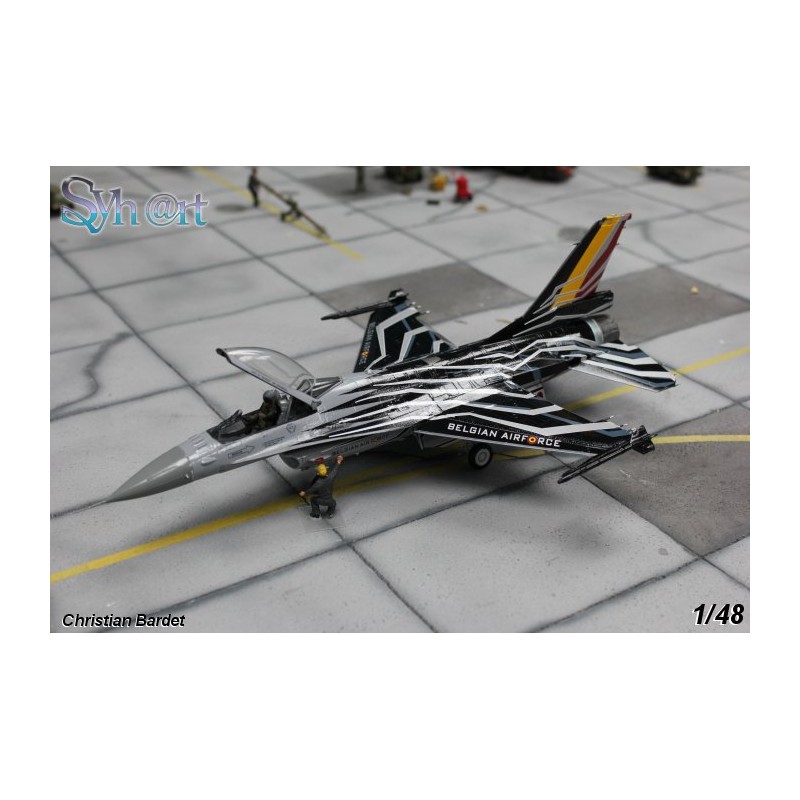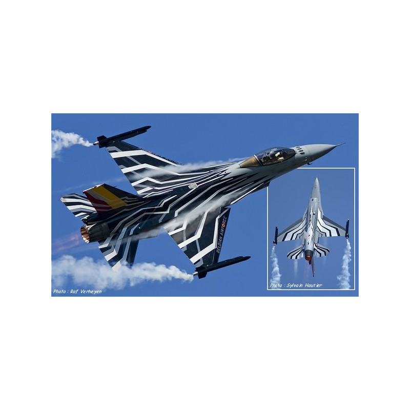 On 2015, Cdt "Gizmo" De Moortel is named demontrator pilot for Belgian F-16. Flying in Famous 31th Sqn "Tiger" based on Kleine-Brogel AB, he fly with the newly painted FA-123 callsigned "Blizzard". With silver/white lightnings on black background on top, and black lightnings on grey/silver background on bottom, the perfect result for "Flares" Drops.
