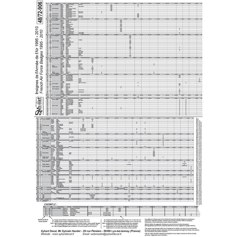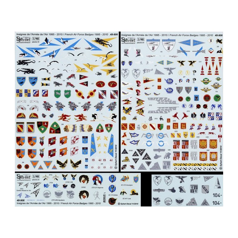 Decals sheets including most of badges used on French Air Force Fighters between 1995 et 2010 (and more...).