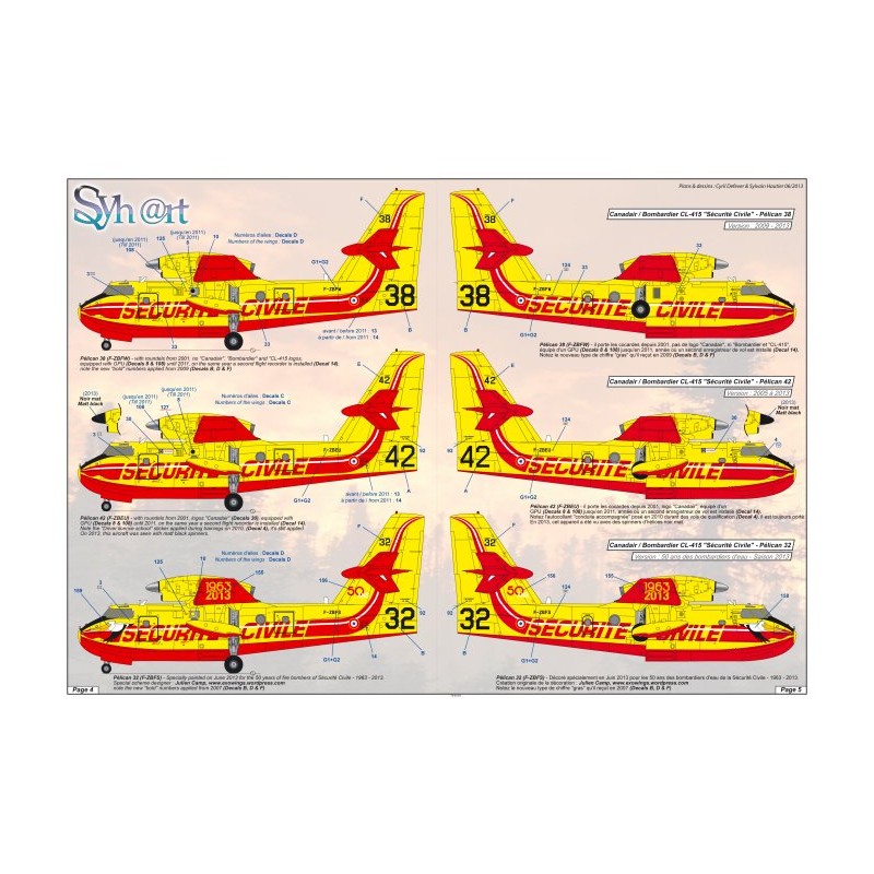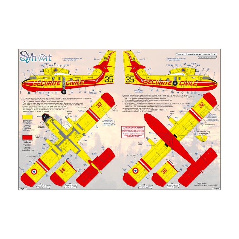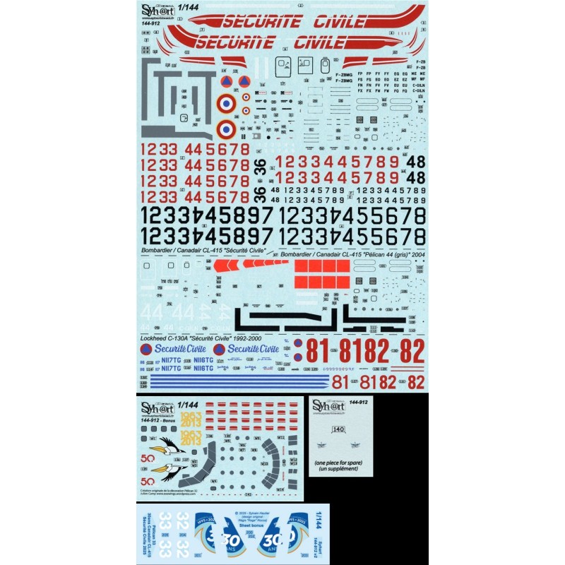 This decals set, including three sheets contain all the markings to complete one Canadair/Bombardier CL-415 and one C-130A Hercules in French Sécurité Civile colors.