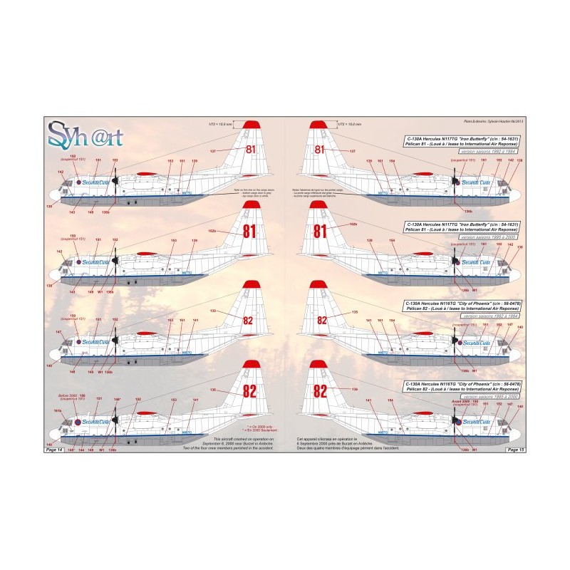 Also included in this set, the decals of C-130A Hercules 81 & 82 wearing French Sécurité Civile. Registered N117TG & N116TG, rent to the American firm International Air Reponse, they where used has heavy fire bombers, during seasons 1992 to 2000 (except 1997), to replace the DC-6s retired on 1990.