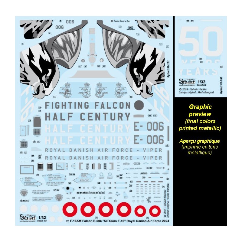 This decals sets was concieved in collaboration with Mr Mads Bangsø, original author and the Royal Danish Air Force F-16 Demo team directly on the real aircraft.