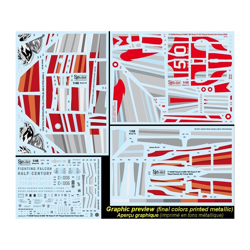 - The 1/48 sets will require three shades of metallic paint "Red 2, Silver 1 and Silver 3" (optional), as base, the other shades are provided by the decals markings.