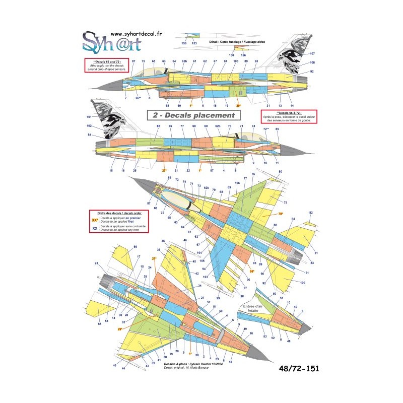 This decals sets was concieved in collaboration with Mr Mads Bangsø, original author and the Royal Danish Air Force F-16 Demo team directly on the real aircraft.