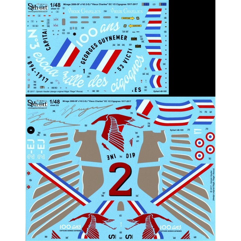To commemorate the 100th anniversary of the death of Captain Georges Guynemer, the Mirage 2000-5F # 43 2-EJ received the colors of the Spads from Squadron No. 3 Storks, with the name of "Vieux Charles" that Guynemer gave to all his planes since his first victory on July 19, 1915 aboard Morane Saulnier type L "Vieux Charles" , the first of the name.