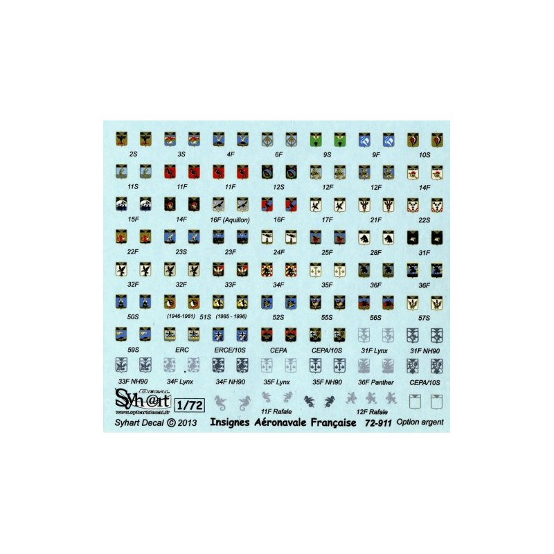 Majority of French Naval Aviation squadrons badges and their variantes are represented... (Low viz, types, periods...).