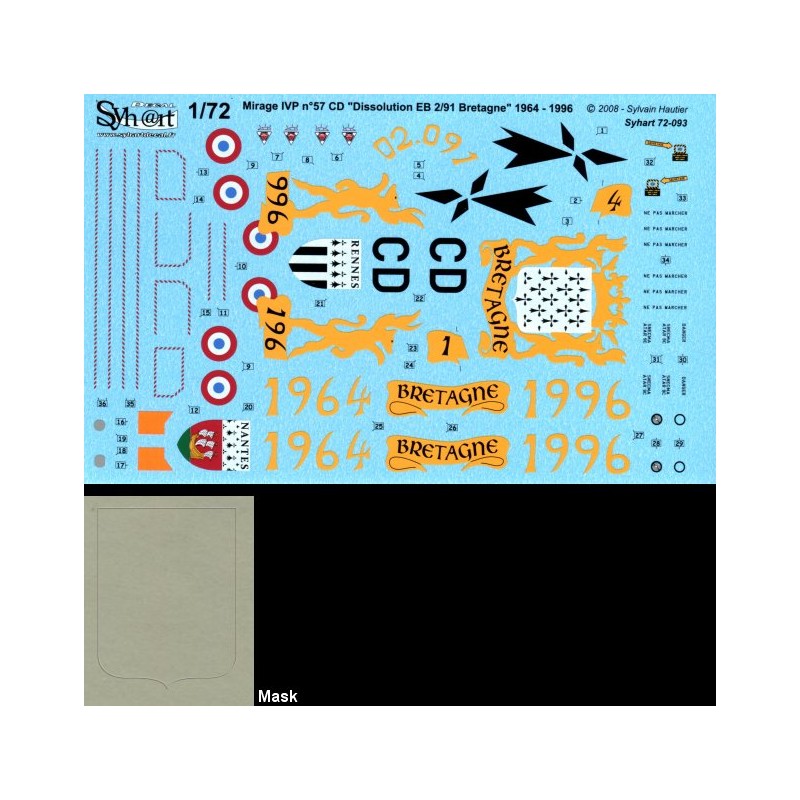 The Mirage IVP #57 (CD) received this special paint scheme for the retirement of Strategic Bomber Squadron EB 2/91 "Bretagne" on 31st Juillet 1996. Today the "Bretagne" bacame Air to Air refueling Squadron ERV 93 "Bretagne" with C-135FR based on Istres