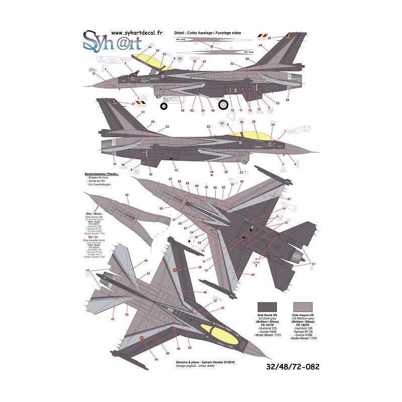 To take the following of the F-16 FA-131 (Réf : Syhart 081), the FA-134 received a new scheme on 2009 to be the new Belgian demonstrator. Flown by Cdt "Mitch" Beulen from the 349th Fighter Squadron based on Kleine-Brogel, like on previous aircraft, it had be used during usual operations between airshows seasons, so the scheme had to be painted with the standard F-16 colors.