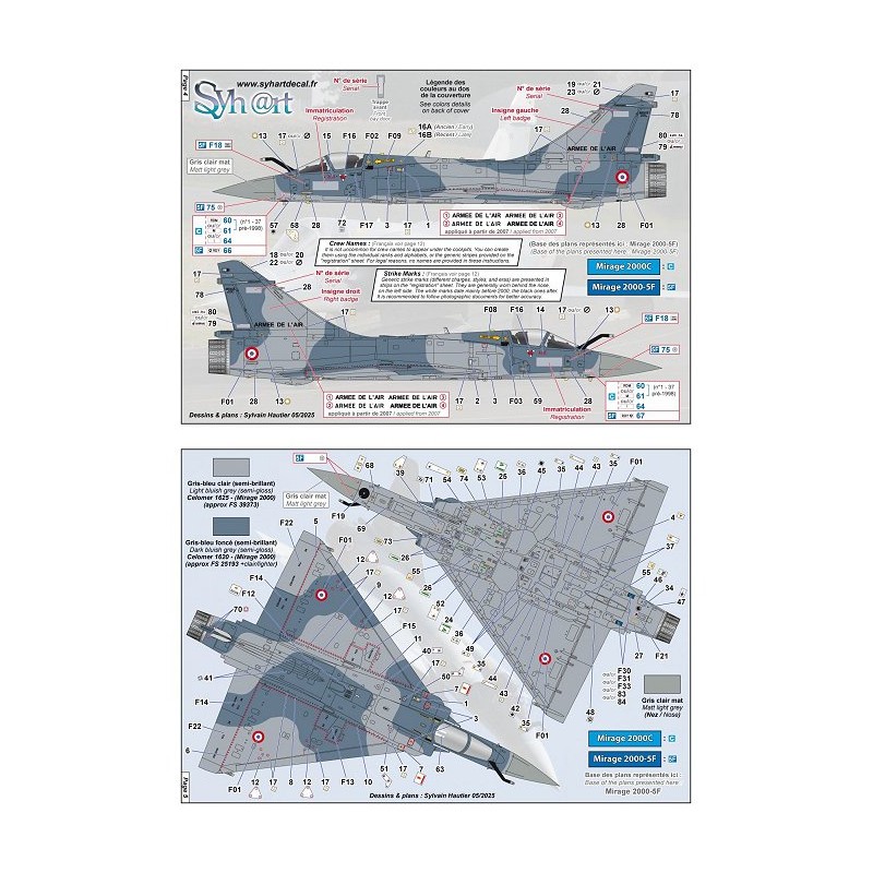 (A second decals set dedicated to the "green" Mirage 2000s (versions D and N) is also available under the reference Syhart 923).