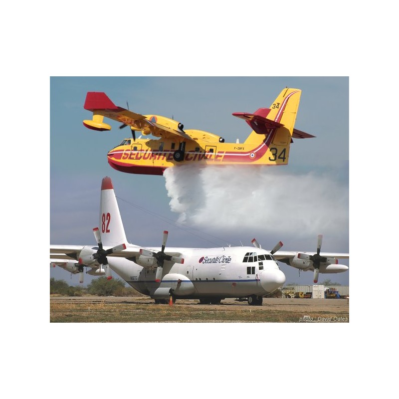 Also included in this set, the decals of C-130A Hercules 81 & 82 wearing French Sécurité Civile. Registered N117TG & N116TG, rent to the American firm International Air Reponse, they where used has heavy fire bombers, during seasons 1992 to 2000 (except 1997), to replace the DC-6s retired on 1990.