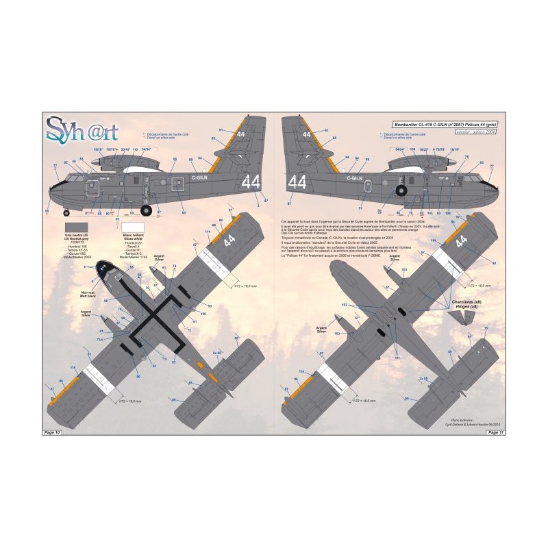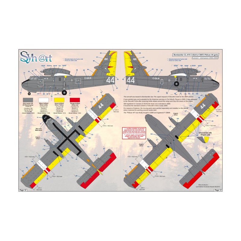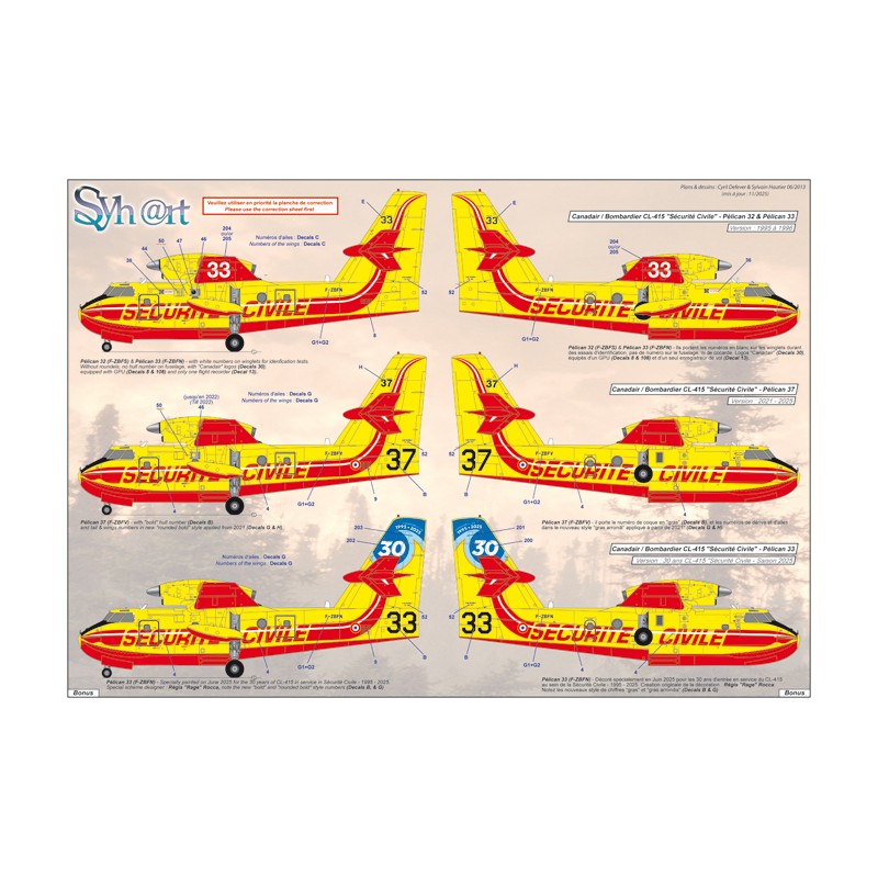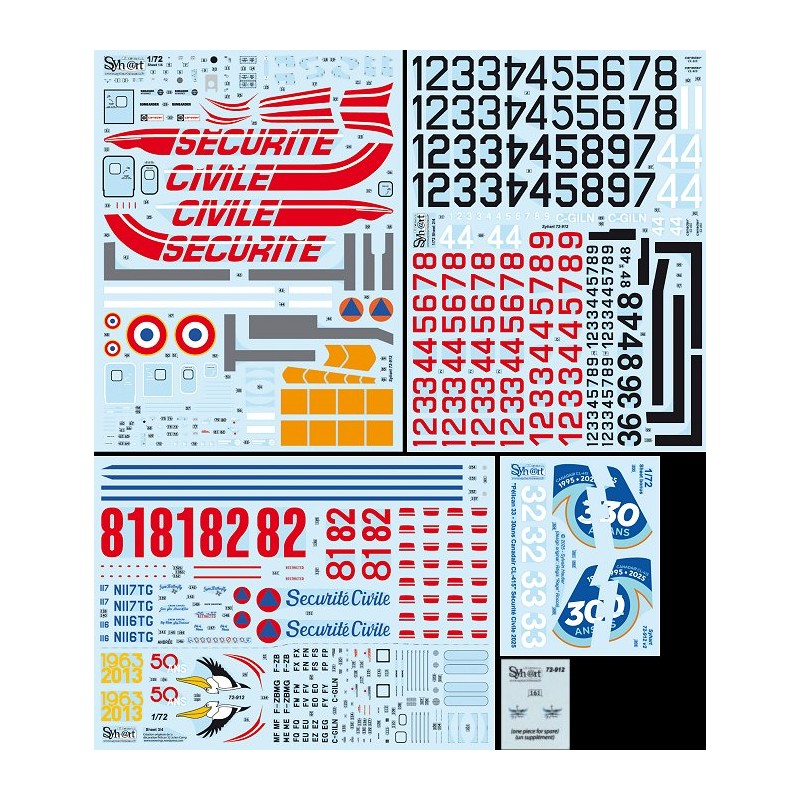 This decals set, including six sheets contain all the markings to complete one Canadair/Bombardier CL-415 and one C-130A Hercules in French Sécurité Civile colors.