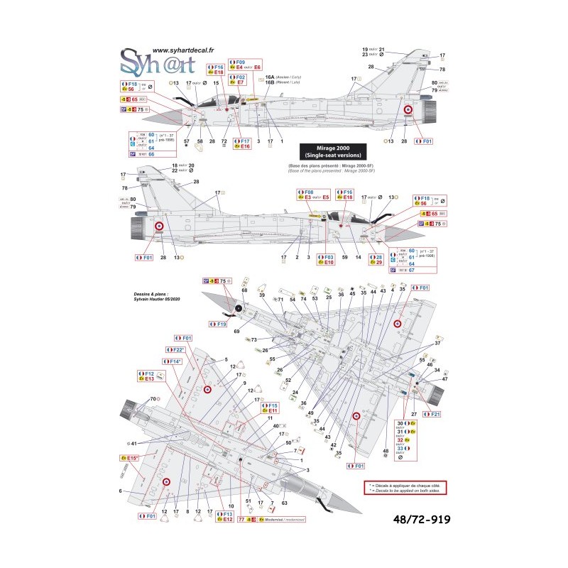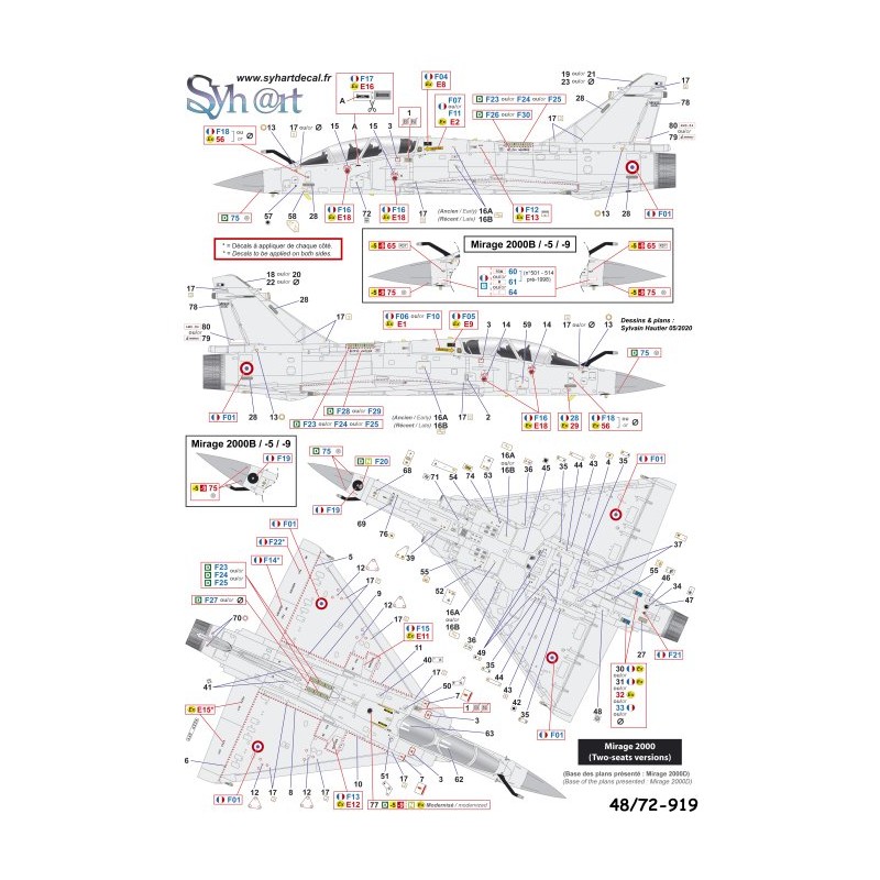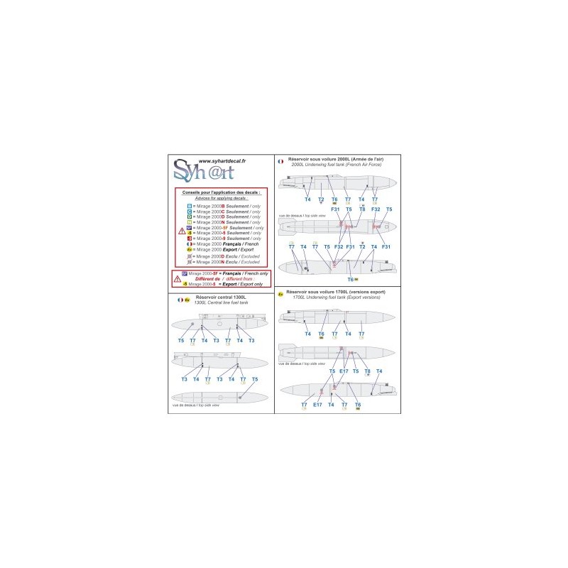 Indeed the reference Syhart 922 and 923 contains all the badges and registrations for french Mirage 2000s, but contains only one sheet with general stencils marks finally allowing to reproduce only one model of Mirage 2000, while many others combinations (badges + registrations) remain possible.