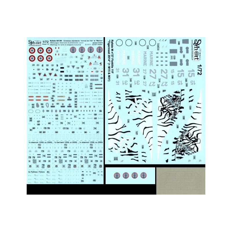 Ce set de décalcomanies contient tous les marquages permettant de réaliser l’un des Rafale M qui prirent part au NATO Tigermeet 2014, organisé en Juin sur la base de l’AG51 "Immelmann" à Schleswig-Jagel au nord de l’Allemagne.