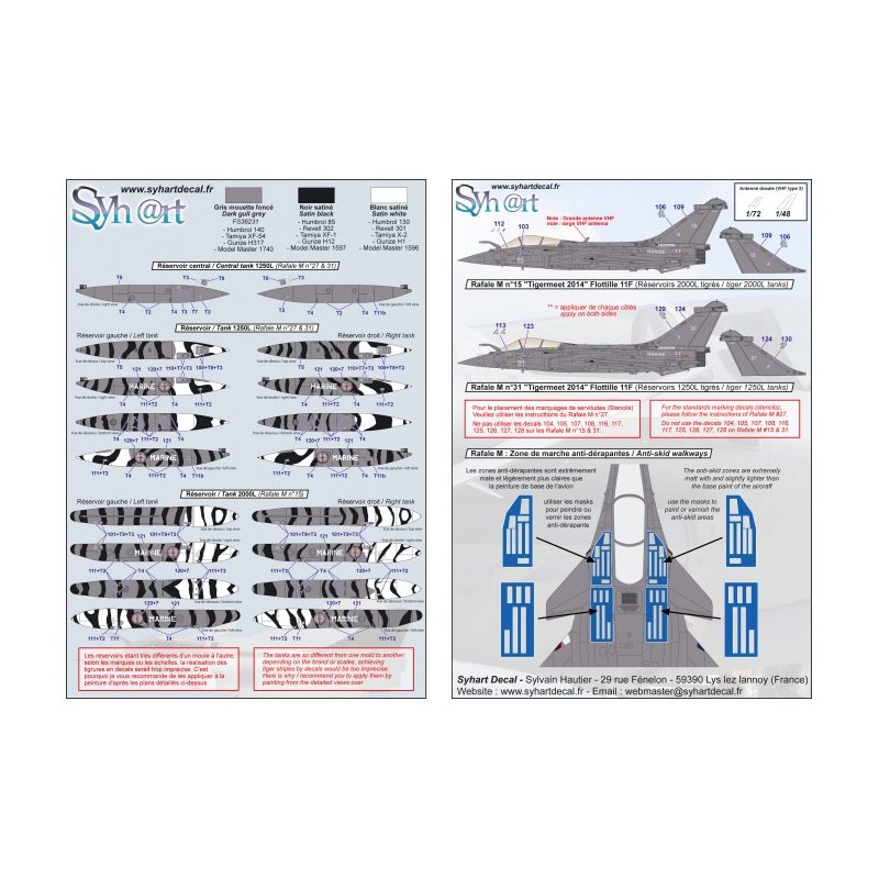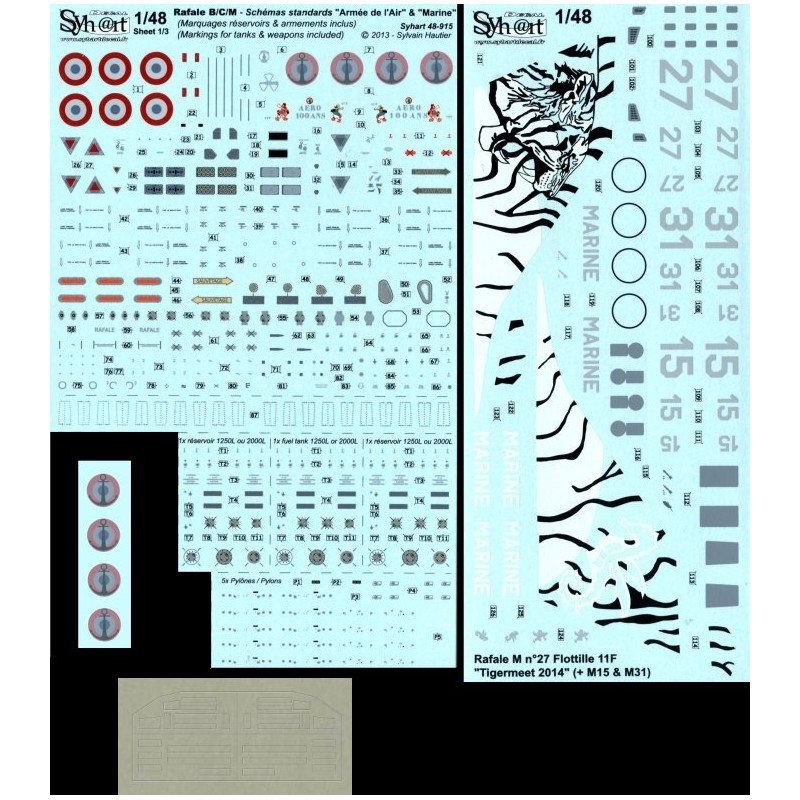 Ce set de décalcomanies contient tous les marquages permettant de réaliser l’un des Rafale M qui prirent part au NATO Tigermeet 2014, organisé en Juin sur la base de l’AG51 "Immelmann" à Schleswig-Jagel au nord de l’Allemagne.