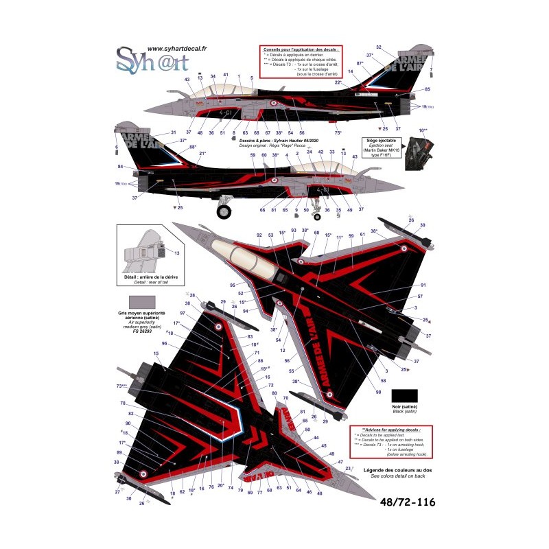 Merci à Mr Régis Rocca, auteur original de cette décoration et à Dassault Aviation pour les accord de la réalisation de ces planches de décalcomanies.