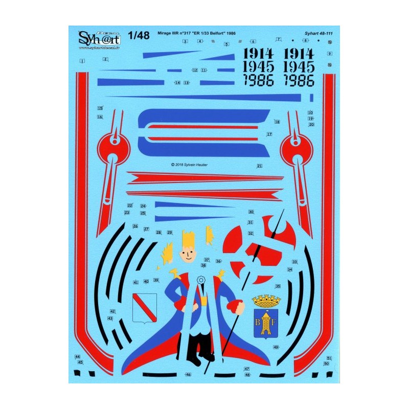 que le Mirage IIIR n°317 fut entièrement peint blanc, flanqué d'une Hache sur la dérive, des armoiries de Belfort et le Strasbourg sur les ailes, et du "Petit prince" tenant la hache sur l'intrados.