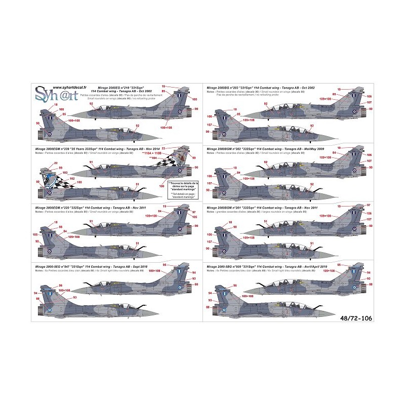 Cet ensemble de décalcomanies contient tous les marquages pour réaliser un Mirage 2000 grec parmi :