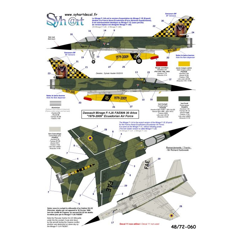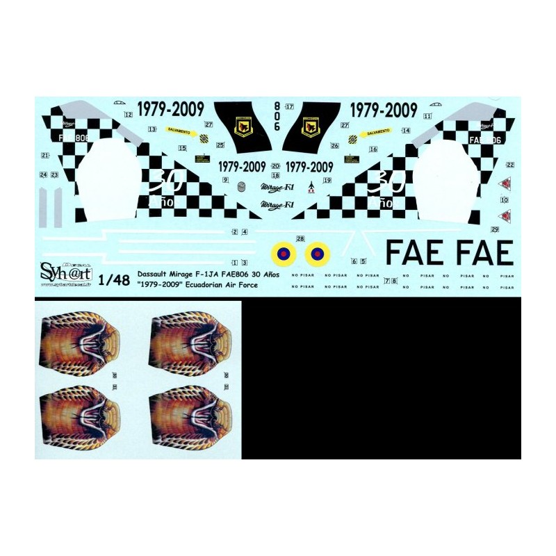 Afin de fêter les 30 ans de Service du Mirage F-1 au sein de la Fuerza Aerea Ecuadoriana (Force Aérienne Equatorienne), le Mirage F-1JA FAE806 de "Escadron 2112" reçut cette décoration hautement colorée sur la dérive et le réservoir ventral en Octobre 2009.
