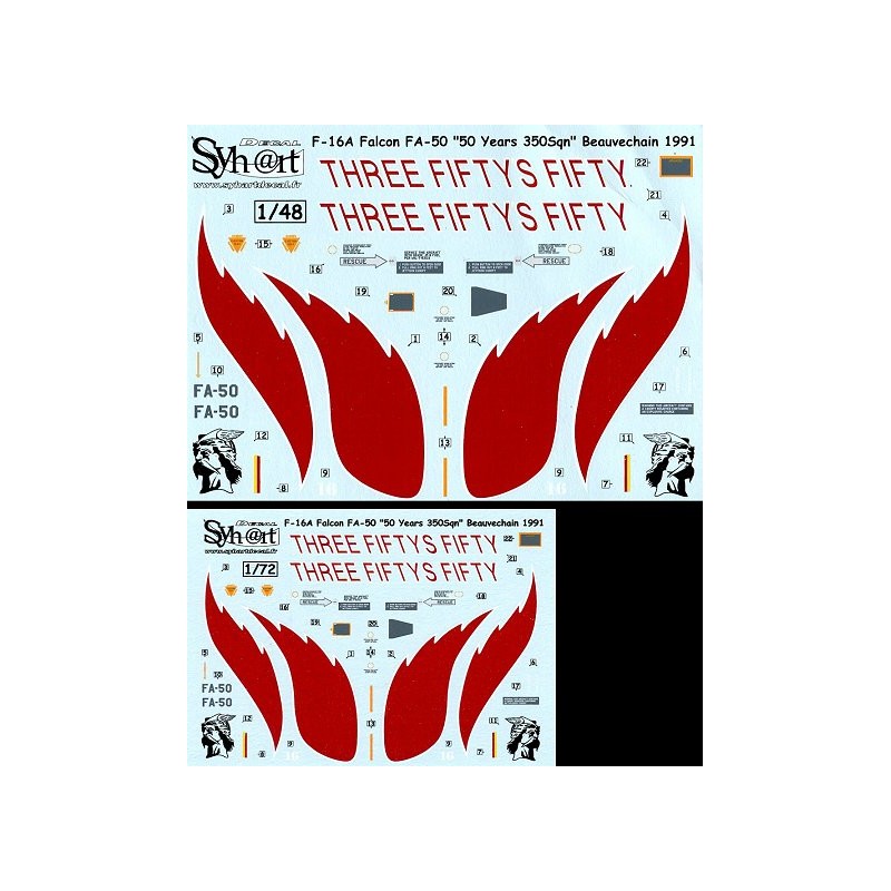 - le F-16A Falcon (Block 10) FA-50 'Three Fifty's Fifty" 50 ans 350Sqn Beauvechain 1992