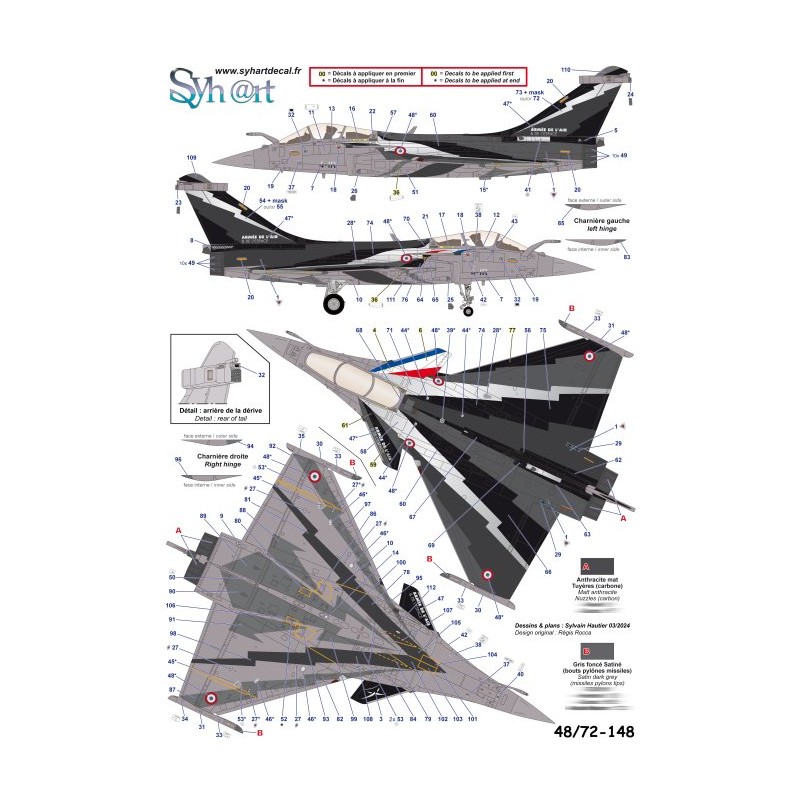 Merci à Mr Régis Rocca, auteur original de cette décoration et à Dassault Aviation pour les accord de la réalisation de ces planches de décalcomanies.