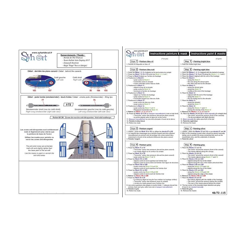 Merci à Mr Régis Rocca, auteur original de cette décoration et à Dassault Aviation pour les accord de la réalisation de ces planches de décalcomanies.