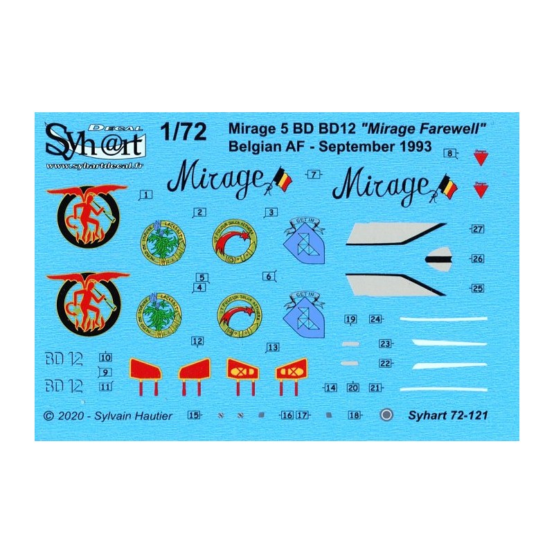 En 1993 la Belgique décide de retirer ses Mirage 5 du service alors qu'ils sont en cours de modernisation au standard "Mirsip". Le Mirage 5 BD12 est spécialement décoré en argenté, pour le retrait des Mirage 5 belges, il arbore les insignes des quatre unités ayant volées sur Mirage.