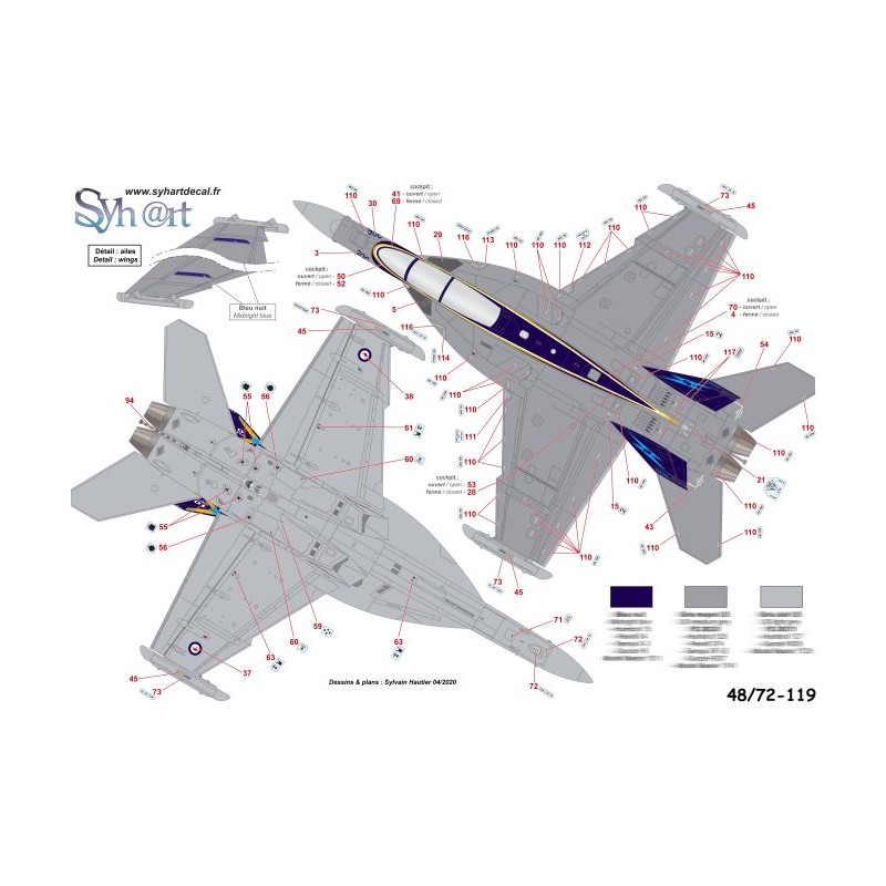 - 1 jeu de masques pour le contour avant du cockpit (séparation gris / bleu).