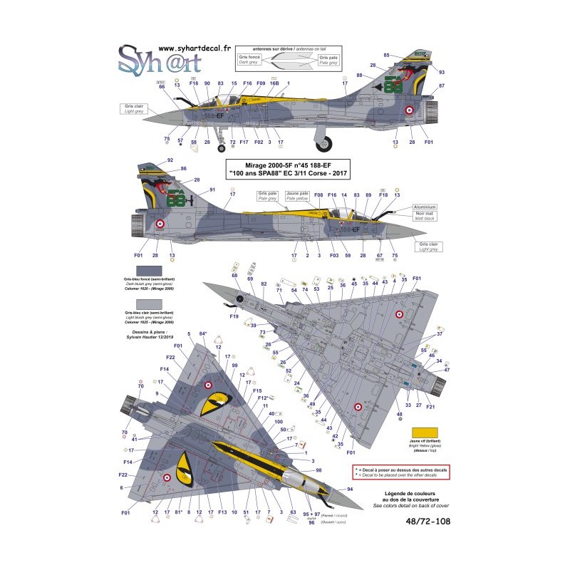 Un jeu de decals "marquages de servitudes" supplémentaire permet de réaliser ces deux Mirage 2000 (voir : Syhart 919).
