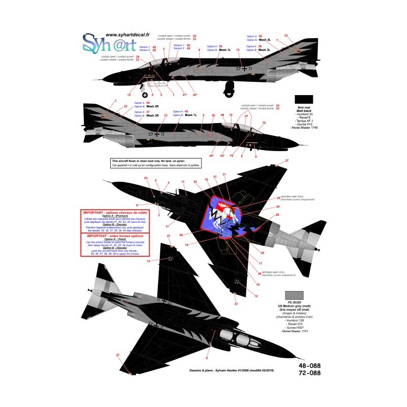 Il s'agit d'une nouvelle édition (en sérigraphie) de la référence Syhart Decal 48/72-007 (sortie en 2005), la conception des decals a été modifiée.