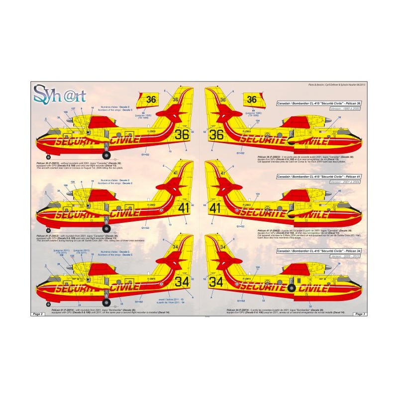 Les décales avec toutes les immatriculations de la flotte de Canadair (Pélicans) en service depuis 1995 y est proposé, ainsi que leurs variantes effectuées au travers des années. Vous pouvez ainsi effectuer votre propre choix dans toute gamme des appareils au travers des saisons.
