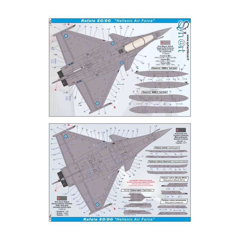 Tous les marquages pour un Rafale de la Force Aérienne grecque (versions : mono ou biplace).